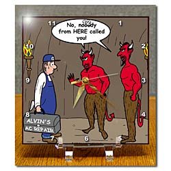 Air Conditioner Repair in Hell Desk Clock is new, handcrafted utilizing unique process resulting in a stunning high gloss ceramic-like finish. Measures 6" x 6", comes with transparent acrylic stand. Single AA battery is not included. Read more...