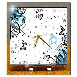 Butterflies Desk Clock is new, handcrafted utilizing unique process resulting in a stunning high gloss ceramic-like finish. Measures 6" x 6", comes with transparent acrylic stand. Single AA battery is not included. Read more...