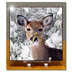 Deer Desk Clock is new, handcrafted utilizing unique process resulting in a stunning high gloss ceramic-like finish. Measures 6" x 6", comes with transparent acrylic stand. Single AA battery is not included. Read more...