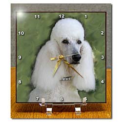 Standard Poodle Desk Clock is new, handcrafted utilizing unique process resulting in a stunning high gloss ceramic-like finish. Measures 6" x 6", comes with transparent acrylic stand. Single AA battery is not included. Read more...