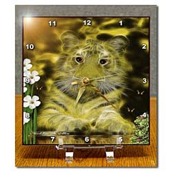 Free Shipping Curious Kitty - Tiger Fractalius Art - 6x6 Desk Clock @ Amazon.com