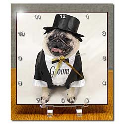Groom Desk Clock is new, handcrafted utilizing unique process resulting in a stunning high gloss ceramic-like finish. Measures 6" x 6", comes with transparent acrylic stand. Single AA battery is not included. Read more...