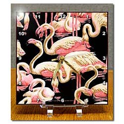 Free Shipping Pink Cream Flamingos on Black - 6x6 Desk Clock @ Amazon.com