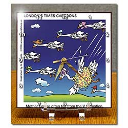 Mother Goose Desk Clock is new, handcrafted utilizing unique process resulting in a stunning high gloss ceramic-like finish. Measures 6" x 6", comes with transparent acrylic stand. Single AA battery is not included. Read more...