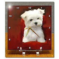 Maltese Puppy Desk Clock is new, handcrafted utilizing unique process resulting in a stunning high gloss ceramic-like finish. Measures 6" x 6", comes with transparent acrylic stand. Single AA battery is not included. Read more...