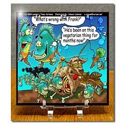 Free Shipping Vegetarian Pirhanas - 6x6 Desk Clock @ Amazon.com