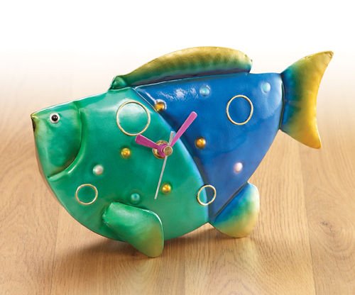 Free Shipping 9.5" Hand Sculpted Steel Fish Whimsical Desk Clock Figure @ Amazon.com