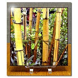 Bamboo Desk Clock is new, handcrafted utilizing unique process resulting in a stunning high gloss ceramic-like finish. Measures 6" x 6", comes with transparent acrylic stand. Single AA battery is not included. Read more...