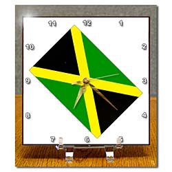 Jamaican Flag Desk Clock is new, handcrafted utilizing unique process resulting in a stunning high gloss ceramic-like finish. Measures 6" x 6", comes with transparent acrylic stand. Single AA battery is not included. Read more...