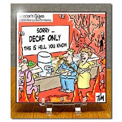No Caffeine This Is Hell Desk Clock is new, handcrafted utilizing unique process resulting in a stunning high gloss ceramic-like finish. Measures 6" x 6", comes with transparent acrylic stand. Single AA battery is not included. Read more...